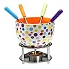 - Description détaillée: Versez du chocolat fondu encore chaud dans le bol de la fondue. La bougie chauffe-plat le maintient au chaud. Avec les pics, trempez dans le chocolat fruits frais, guimauves, bonbons, gâteaux, fruits secs, brioches et régalez-vous.