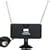 - Connexions: Entrée antenne externe, entrée alimentation extérieure, Entrée AV, sortie AV, prise écouteurs