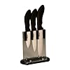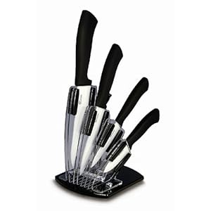 - Bloc éventail en plexiglass. Ce produit signé « PRADEL EXCELLENCE » se compose de cinq pièces en lame céramique blanche : 1 couteau à découper lame céramique 15,5 cm + 1 couteau chef lame céramique 13 cm + 1 couteau de cuisine lame céramique 10 cm + 1 couteau office lame céramique 7,5 cm + 1 éplucheur lame céramique. Innovantes et plus dures que l’acier, les lames céramiques coupent durablement avec un tranchant, une douceur et une légèreté incomparables. Faciles à nettoyer ces couteaux ont un manche ABS au toucher peau de pêche qui procurent une sensation de découpe totalement nouvelle.