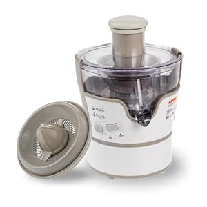 - Description détaillée: Centrifugeuse et presse agrumes réunis dans un seul appareil: Plus pratique, moins encombrant. Moins de découpe avec sa goulotte élargie et un plan de travail toujours propre grâce à son bec verseur avec stop gouttes.