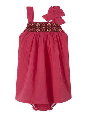 La Robe CITIBUNG, bretelles avec détail noeud, plastron brodé, bloomer.