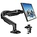 - Frees Up More Space - The monitor arm desk mount easily lifts the monitor from the desk, using only the clamps or grommets to fix the base, freeing up over 80% of your valuable space to store items such as large keyboards and mouse pads.